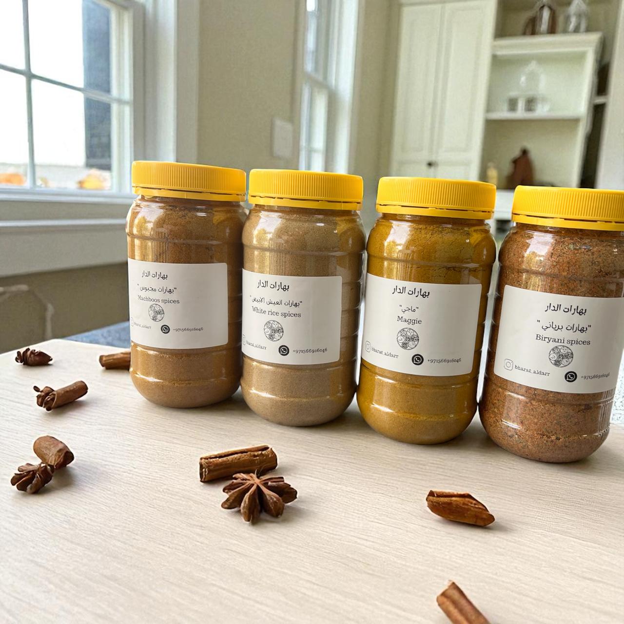 4 أنواع من البهارات مجبوس برياني العيش الأبيض ماجي