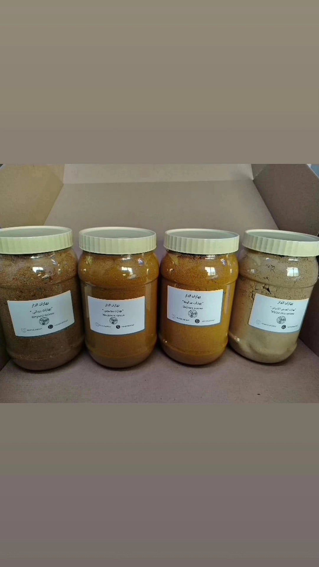 4 أنواع من البهارات مجبوس برياني صالونة وبهارات العيش الأبيض الحجم 1500ملي للعلبه